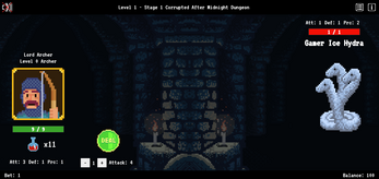 If you win a game of Blackjack you do damage to monster, if you loose it, the monster deals damage to you