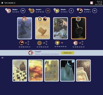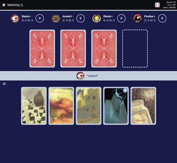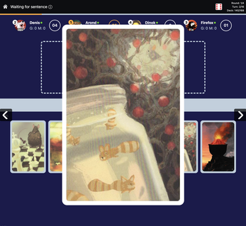 This is an online multiplayer version of a card board game, focusing on imagination and creativity.