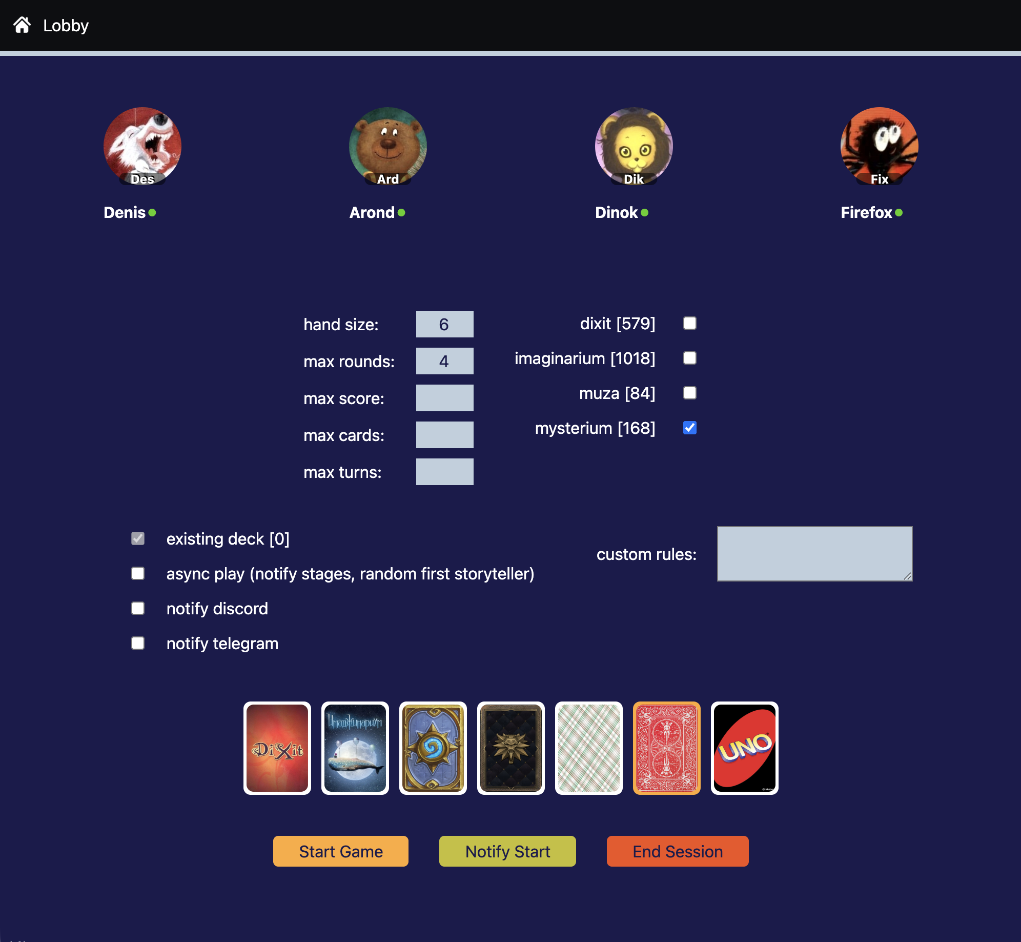 External link to the game: https://dixit.gdainti.com